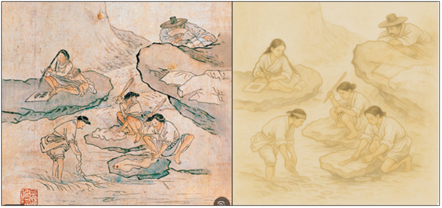 | 표현 도구 | 붓, 먹, 종이 | 디지털 브러시, 타블렛 |