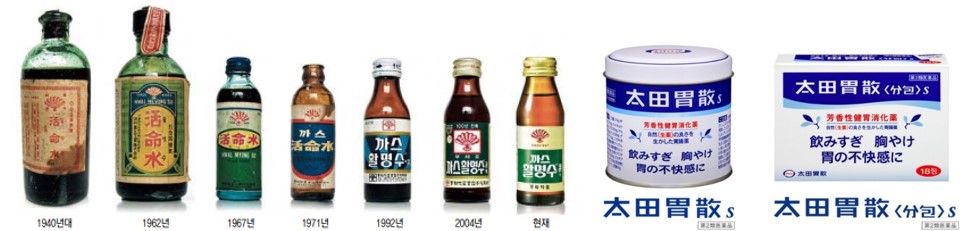 | 대표 제품 | 오타이산(大田胃散) · 가루형 | 부채표 활명수(活命水) · 액상형 |